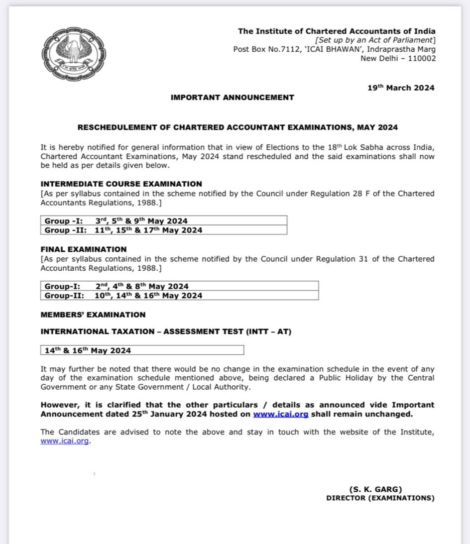 CAclubindia on X: “Revised Schedule of CA May 2024 Exams Released